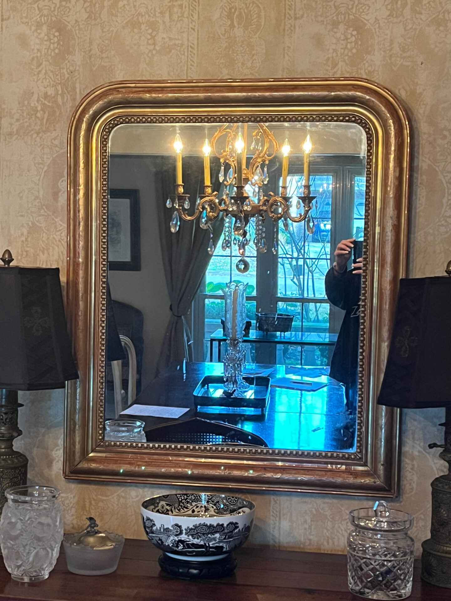 Brass lamp with center maiden – adjustable candle brackets and sliding metal shades